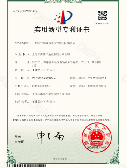 WRLEADING GROUP AS申请的SCBA气瓶防爆装置专利近日获国家授权,该专利通过优化空气呼吸器压缩气瓶的结构与