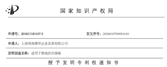 领海专利家族又添新成员:适用于极地的存储箱