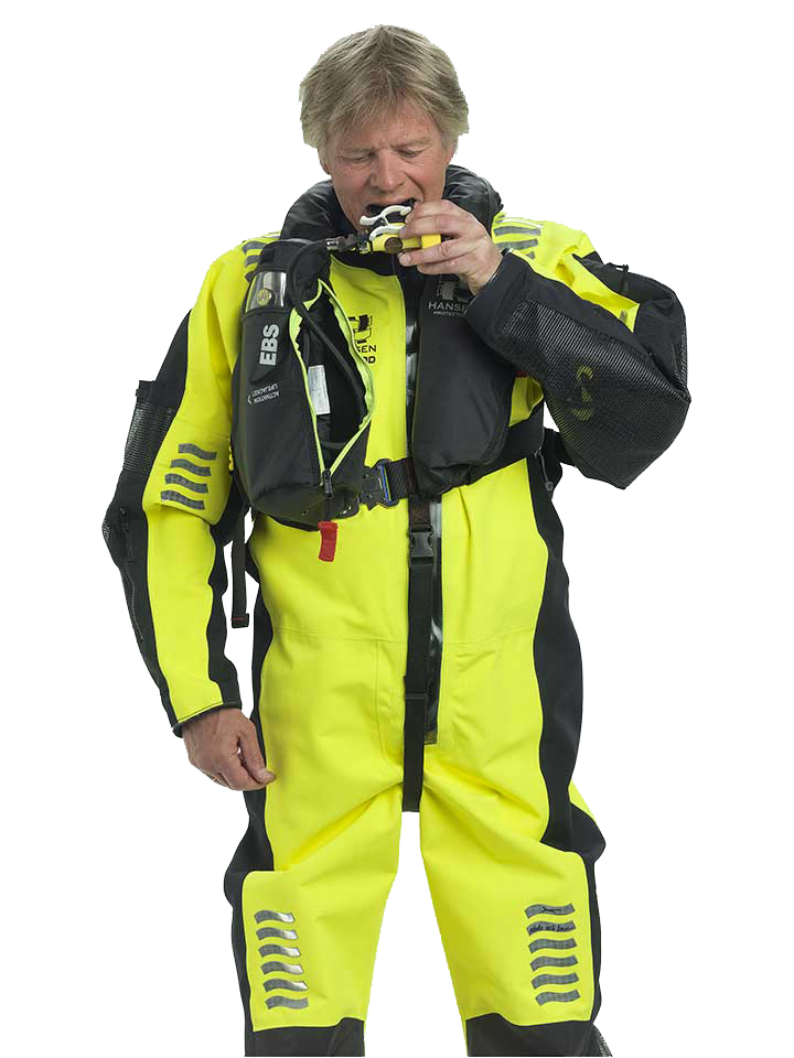 本次展会领海集团带来的来自挪威具有140年历史的HANSEN飞行员工作服Seawind.它是一款适用于直升机飞行员、水上救援、风电平台等作业的工作服,它具有舒适和方便的设计,由具有高度透气特性的耐用纤维GoreTex材料制成,颈部具有防水拉链设计更舒适,腋下设计有透气拉链,高可见度的荧光色搭配,宽大的网状纤维口袋,带不锈钢材质D型环和弹簧钩的起吊带,头罩手套都配备有相应位置的口袋,带漂浮钩的安全绳,可与经过认可的救生衣一起使用;SeaWind工作服满足ISO15027关于 B级套装(4小时热保护)的要求和ETSO法规(需与内衬一起穿戴)。这款来自挪威Hansen公司的工作服,凭借其精湛的细节处理、极大的灵活性和宽广的应用范围等特点,获得了众多行业巨头和专业人员的认可,而不局限于风电运维行业,经过CAA-UK认证,同时SeaWind工作服也获得SOLAS、ISO和EASA的认证。因此,它已经被批准在大部分要求苛刻的工作情况下使用。没有其他救生服能声称像SeaWind一样适用于如此宽广的应用范围。为了能够首家提供批准用于工作、海运和直升机运输的救生服,Hansen公司已经坚持不懈地进行了长期努力。为了获得直升机运输服认可,公司必须为工作服配备衬里并且它必须能够与SeaLion救生衣一起穿戴。此外,工作服配备有漂浮绳钩,这是Hansen公司特有的。应急呼吸系统,SeaLion救生衣中集SeaAir EBS应急呼吸系统于一体,该系统使得在水下开始呼吸成为可能,这是以前的应急呼吸系统不能实现的。