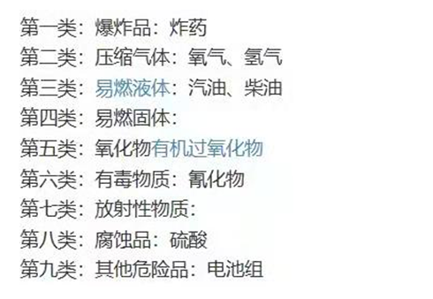 危险品分类(简易版)
