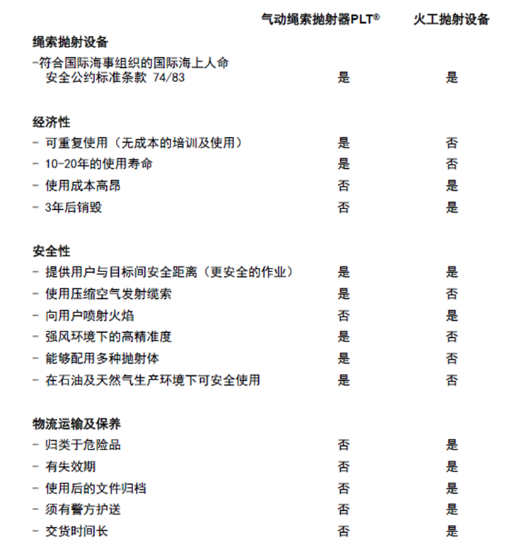与传统的火药抛绳设备相比,PLT气动抛绳器具有以下优点: