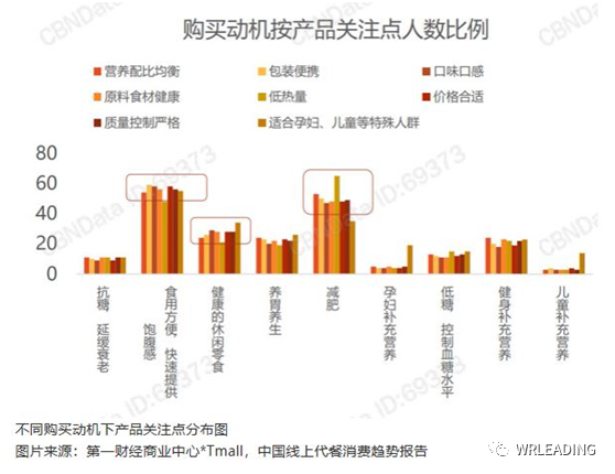 从以上两张图中也可看出,食用方便、快速获得饱腹感和减肥是两个最大的购买动机;基于此动机,做快速饱腹代餐的用户更关注便捷性、口感和价格;而减肥人群中,低热量与营养配比均衡的需求明显高于其他因素。