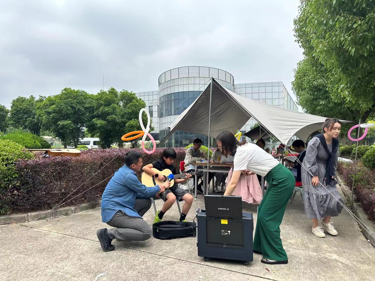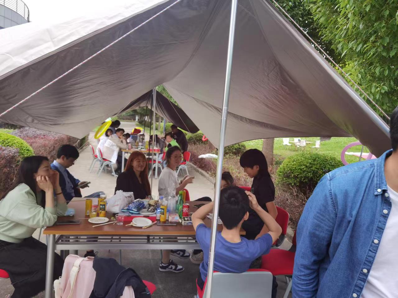 参观完工作区域后,大家移步至室外大草坪开启愉快的烧烤、K歌、游戏活动。