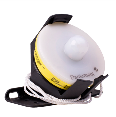 操作:开启救生圈后,灯自动亮起。 当救生圈展开时,挂绳将从其安装的支架上吊起灯。 离开支架后,开关处的开绳将打开灯。