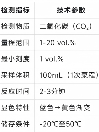 检测管内含特殊化学试剂,与CO₂反应后颜色变化明显,抗干扰性强(如湿度、常见有机气体)。